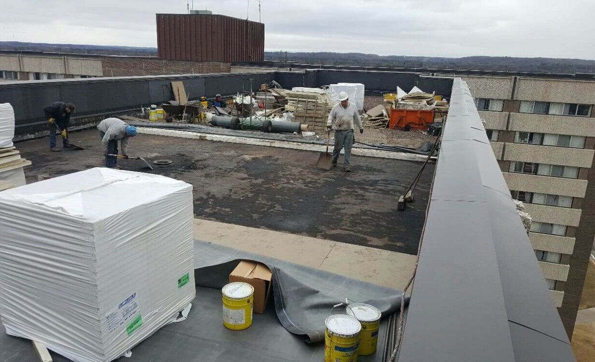 Karlgaard Towers The image shown is us removing large satellite dish and roofing during renovations. Prev Project Next Project
